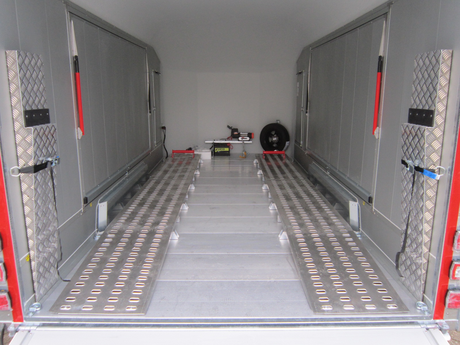 - 8 sjorogen opvouwbaar binnenkant zijdelings geschroefd op de grond / trekkracht elk 250kg