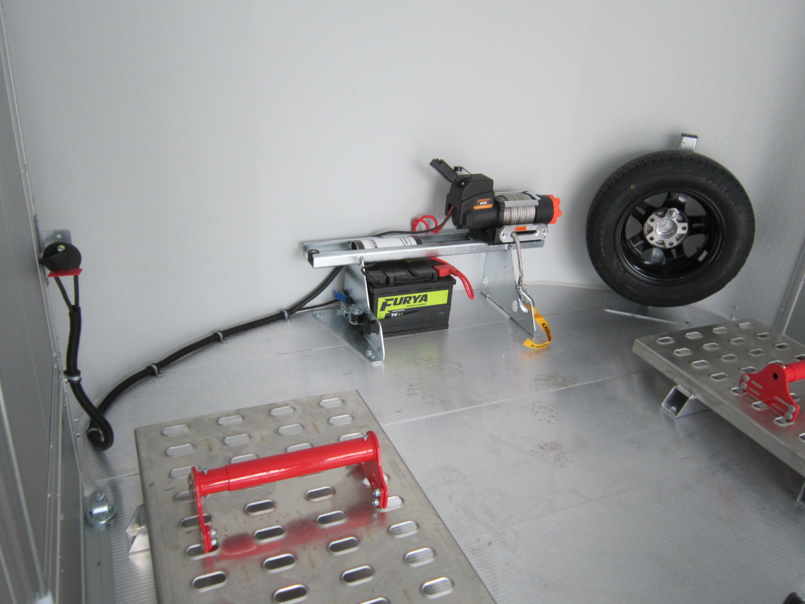 - Elektrische lier L<->R schuifbaar + accu gemonteerd in trailer €650,-
